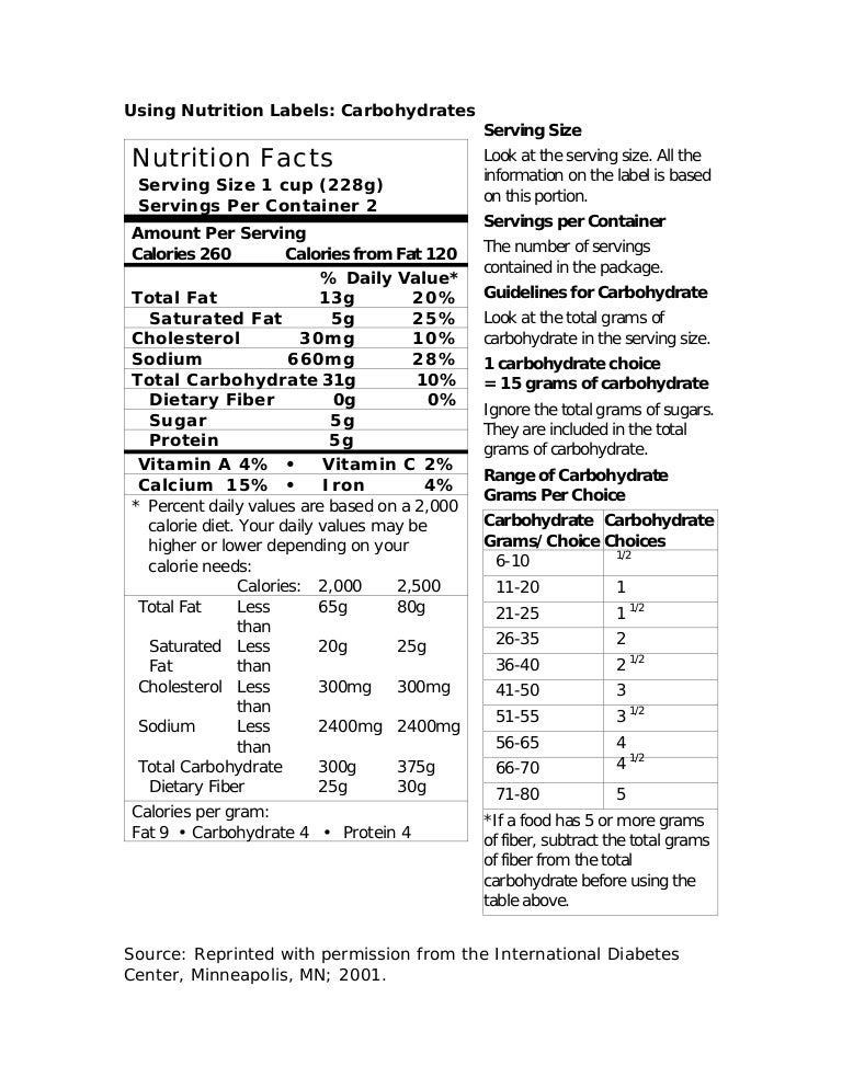 kidshealth.org › en › teensFood Labels (for Teens) - Nemours KidsHealth Food labels provide more than just nutrition facts. They also tell you what's in a packaged food (i.e., the ingredients). People with food allergies need to check ingredient lists to avoid foods that can cause an allergic reaction. Some food labels also state which country the food came from, whether the food is organic, and certain health claims. Food Labels and Counting Carbs - dummies Carbohydrate grams and %Daily Value are listed on the same line on Nutrition Facts labels, as you can see here. Total Carbohydrate is listed in grams. Because %Daily Value is written in bold and off to the right side of the label, and lined up neatly with the actual amount, it is easy to allow your eye to zero in on the %Daily Value rather than ...